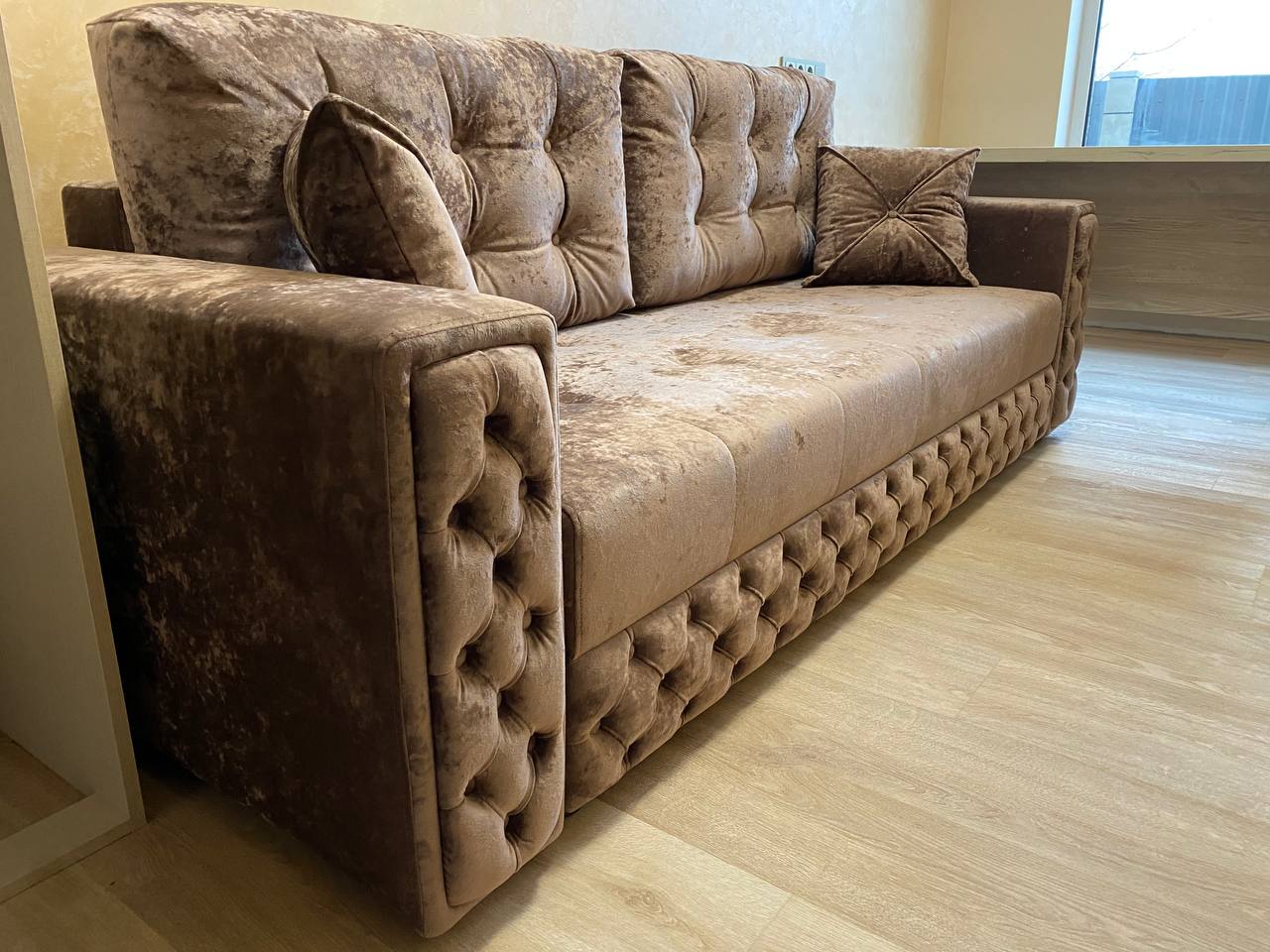 Даллас линейный диван Л-828 Тип: Линейный диван-кровать Размер общий в см: 235 x 110 Спальное место: 190 х 150 Механизм трансформации: Тик-Так Наполнитель: Независимый пружинный блок Материал обивки: Плюш Ниша для белья: Есть ЗАКАЗАТЬ Артикул: Л-828 Категория: Линейные диваны Метка: Даллас Возможно, вам понравится: «Фурор» диван прямой Линейные диваныПодробнее Баден диван прямой П-101 Линейные диваныПодробнее Фурор диван Линейные диваныПодробнее Турин линейный диван П-118 Линейные диваныПодробнее